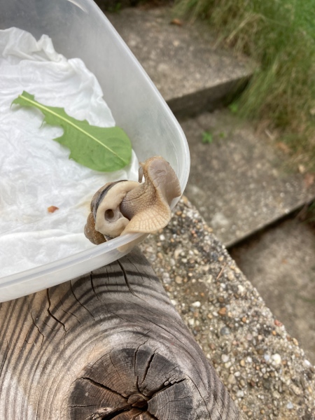 Ich hab sie in eine Brotdose mit nassem Küchenpapier gesetzt und sie versucht (Gott sei Dank) zu fliehen.