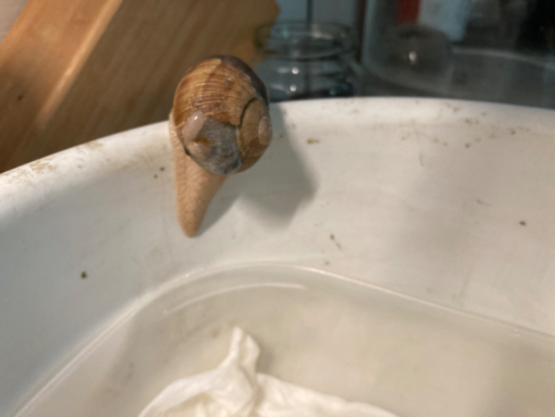 Der offene hintere Teil zeigt eine schwerere Verletzung, aber auch da gibt es gute Chancen. Die Schnecke muss sich jetzt erstmal beruhigen, das kann noch eine zeitlang dauern (verletzte Schnecken sind oft anfangs sehr aktiv, das wird manchmal für ein Zeichen gehalten, dass eine Verletzung nicht schwer sei).