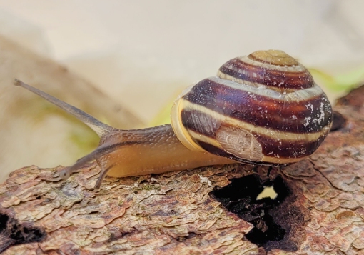habe heute auf dem Gehweg in der Sonne eine Bänderschnecke gefunden die sich schon ganz tief ins Haus zurückgezogen hatte. Ich hab sie erst mal in meinen Garten in den Schatten zu meinen Weinbergschnecken gebracht und etwas angefeuchtet in der Hoffnung dass sie noch lebt. Erst als ich später nach ihr geschaut habe ist mir ein Loch im Haus aufgefallen. Ganz tief drin konnte ich durch das Loch den Körper sehen.