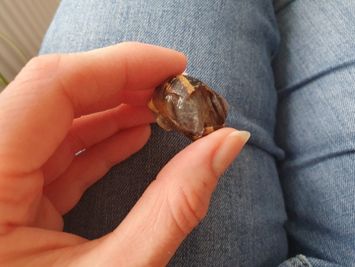 Oder ist sie tot? Hätte sie überlebt, wenn ich ihr gestern Abend schon Kalk (Sepiaschale oder abgekochte gemörserte Eierschale) angeboten hätte? Oder sie heute nicht angestupst hätte? Ich bin wirklich traurig und möchte nicht noch einmal Fehler machen, wenn ich eine Schnecke mit Gehäuseschaden finde.