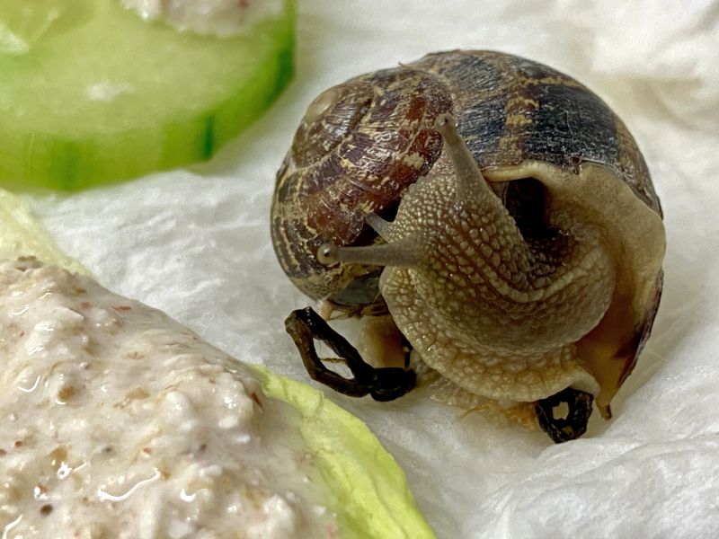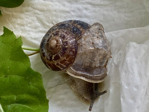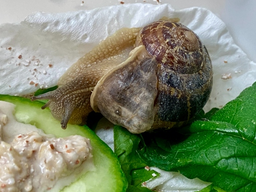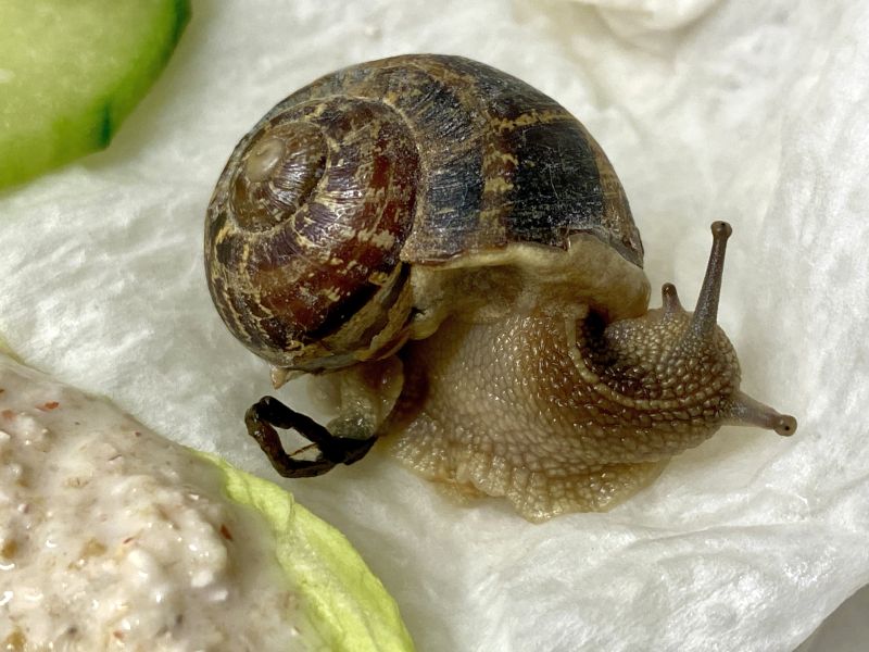 vor ca. 10 Tagen bin ich im Garten auf eine Weinbergschnecke getreten. Das Gras war so hoch gewachsen, dass ich sie leider übersehen habe. Ich habe sie auf ein Salatblatt in einen kleinen transparenten Behälter gesetzt, den ich mit feuchtem, gekalten Küchentuch präpariert hatte. U.a. habe ich ihr einen Brei aus eingeweichten, mit zermörserter Eierschale versetzten Brei angeboten.