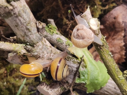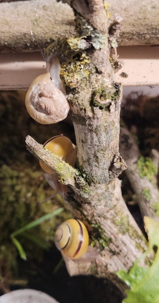 Ist bei mir auch so: wenn ich mitten in der Nacht wieder hochschrecke oder mein Weg zu nachtschlafender Zeit auf`s Klo führt steh ich immer noch mit der Taschenlampe bei den Schneckis und freu mich ohne Ende über die Kleinen beim futtern![]()