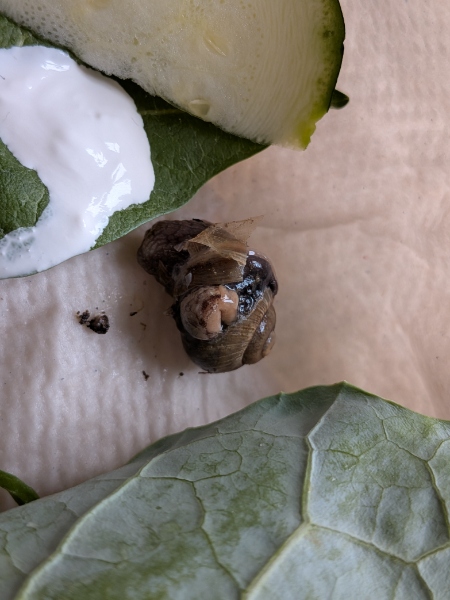 Könnte das Helle eventuell die Lunge sein? Jedenfalls wirkt es nicht wie etwas, was frei liegen sollte. Blöde Bemerkung, sorry, ich meine: es sieht echt gefährlich aus. Aber da wir hier schon eine Schnecke komplett ohne Haus gesunden sehen durften - vielleicht schafft sie es ja.