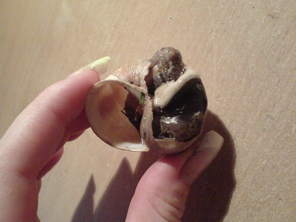 boah die arme Schneck sah aber übel zugerichtet aus