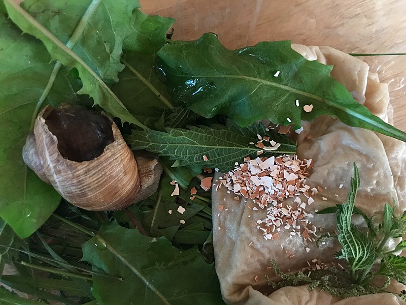 Ich habe sie jetzt mit nach Hause genommen. Sie liegt auf einer Unterlage aus Gras und Löwenzahn. Langsam bewegt sie sich auch wieder und versucht, sich umzudrehen. Ich möchte sie nicht noch öfter drehen und stören und hoffe, sie findet von alleine die richtige „Sitzhaltung“.