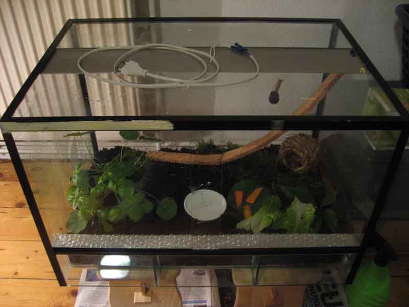 Ein Arbeitkollege hatte noch eins im Keller, das er mir geliehen hat. Ich glaube, es gefällt ihnen ganz gut. Der Plan ist aber trotzdem noch, sie nächstes Frühjahr in die Freiheit zu entlassen - bin eigentlich mit meinem eigentlichen Haustier schon recht ausgelastet. Naja, mal sehen..