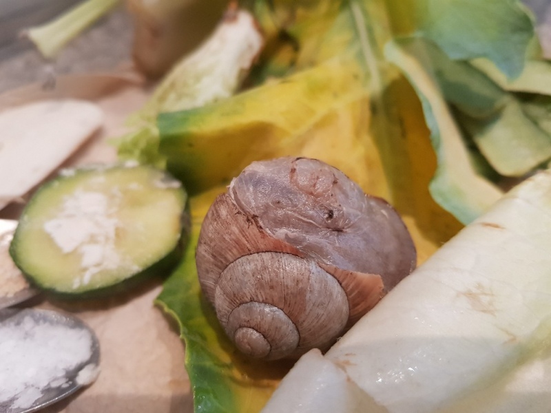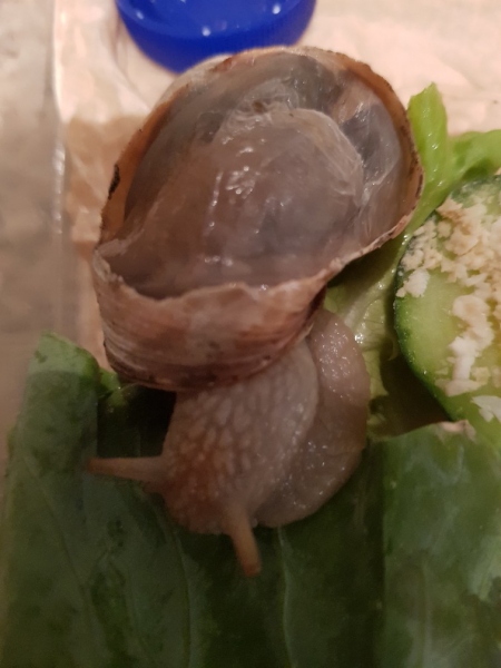 Aber sie wirkt irgendwie traurig. Ich frage mich, ob es besser wäre, sie jetzt schon rauszubringen. Ihr Haus ist definitiv noch nicht wieder richtig aufgebaut, aber es ist geschlossen und überall schon trocken. Und ich weiß auch nicht, ob es hier so cool für sie ist. Ich weiß nicht, ob Schnecken es so mitkriegen, dass sie "gefangen" sind