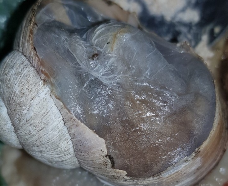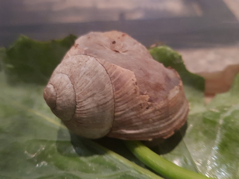Also ein kurzes Update: Die Schnecke lebt und das Haus sieht auch ziemlich gut aus. Es ist nicht superschön geformt, aber sie passt gut hinein und es hat sich überall eine dünne Kruste gebildet.