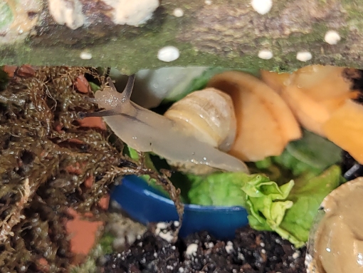 Und dann braucht der Patient eine eigene Box mit feuchtem Zewa, einer Versteckmöglichkeit - am Besten aus Kunststoff, ganz wichtig ganz feiner Kalkbrei und natürlich was essbares.