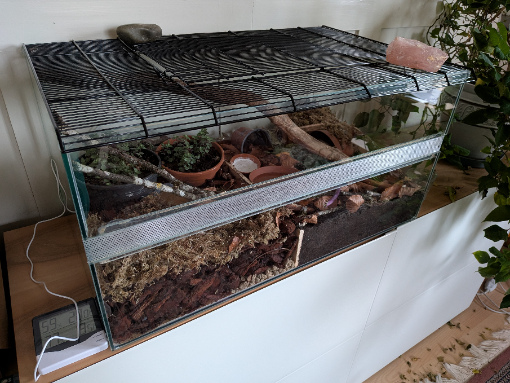 So hat Beamy also nun tatsächlich Wintergesellschaft, wobei ich nicht wirklich sagen kann, ob er sich für diese Schnecke interessiert. Er hängt trotz der neuen Umgebung seit gestern wieder im Unterschlupf, mal sehen wann er sie überhaupt bemerkt.