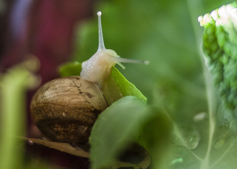 Sie schläft tagsüber, wacht gegen abend hin auf und isst dann recht viel (Kohlrabiblätter, verschiedenste Salate, Gurkenscheiben, Karotte...und in einer Blattmulde biete ich immer frisches Wasser an.) Unten auf dem Boden ist ungedüngte Erde.