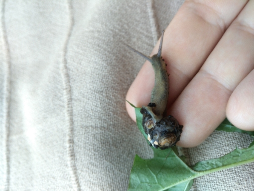 Bei der Gartenarbeit gestern, bin ich Trottel auf eine Schnecke getreten. Das Haus ist nahezu komplett zerstört.(Das Stück, das auf dem Foto zu sehen ist, hat sie mittlerweile abgeworfen oder verloren)