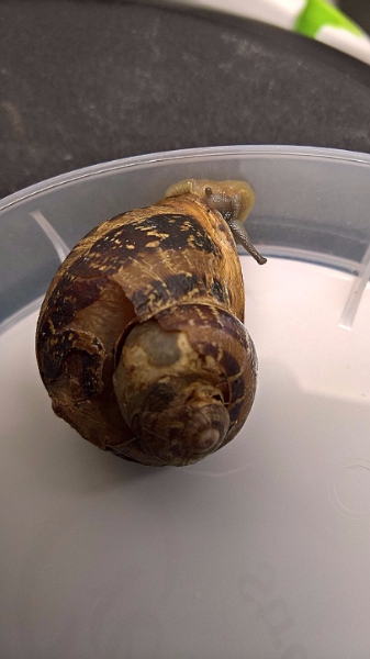 Einige Wochen zuvor konnte ich 2 kleinere Schnecken derselben Art nach 2 Wochen Pflege wieder in die Freiheit entlassen. Sie hatten die Gehäuseschäden repariert.