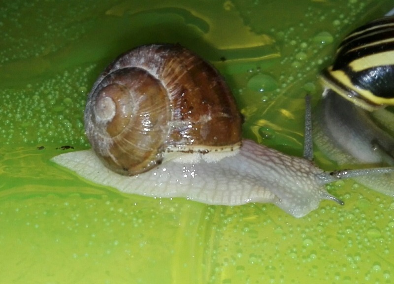 Mein Grosser der ja sehr verliebt ist in unsere Schneckis wollte ihn verarzten. Wir nahmen ihn mit.