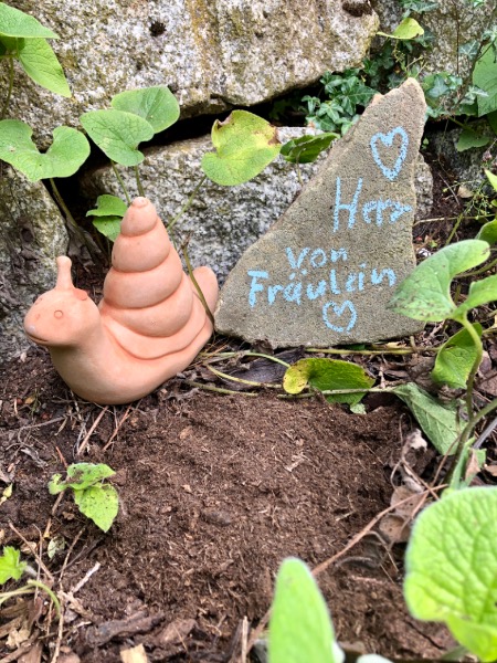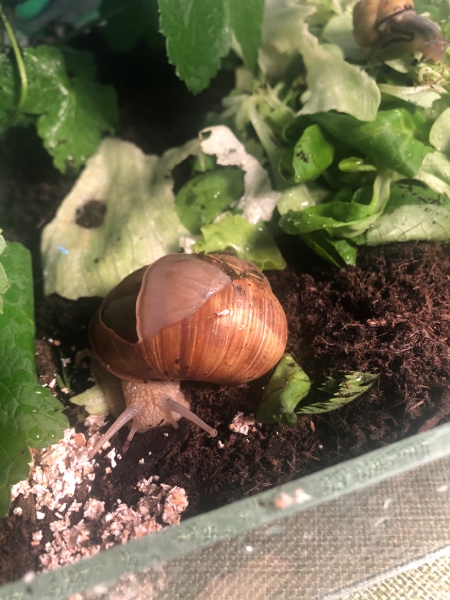 Wir haben ein Terrarium, zwei weitere kleine Weinbergschnecken sind schon drin. Einmal Gundula - die fsst geheilt ist und Daisy als Sozialkontakt. Blumenerde und Rindenmulch sowie Äste, Kalk in Form von gemörtelten Eierschalen sowie eine Schale Heilerdenpampe und Salat sowie eine Erdbeere sind gerade die Grundausstattung.