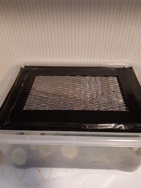 Der Deckel der Box ist relativ schwer, eben wegen der Katzen. Einfach nur Fliegengitter reicht nicht.