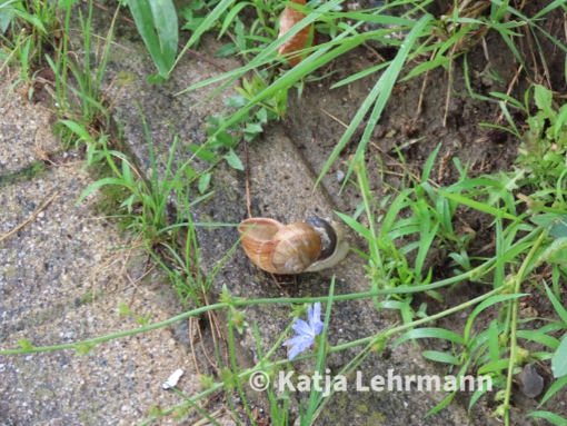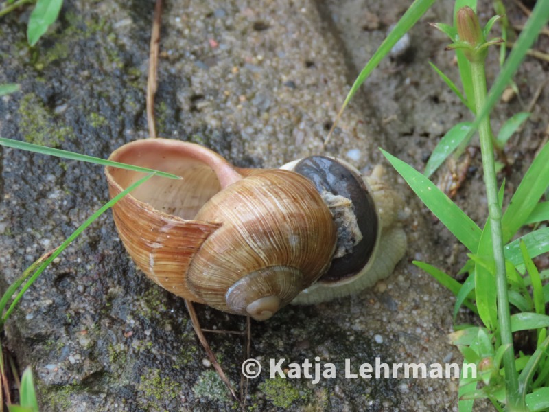 Nach einer Stunde saß die Schnecke noch fast am selben Platz am Rand eines Gehwegs. Ich habe sie dann vorsichtig über eine kleine Gartenmauer ins Gras gelegt, damit sie versteckt war. Jetzt eben (vier Stunden später) habe ich nach ihr geschaut und sie saß fast noch am selben Fleck.