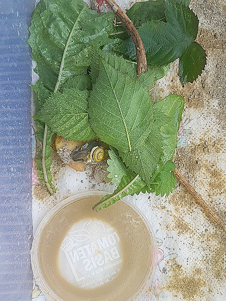 Da sie noch gelebt hat und sehr agil war habe ich sie mit in die Wohnung genommen und ihr eine große Box besorgt. In der Box ist feuchtes Zewa, eine Schale mit Heilerdebrei, großzügig Kalk, Tomate, Apfel, Pflaume, Traube, Löwenzahnblätter, Brennesselblätter, Himber und Brombeerblätter. Bis gestern war sie sehr aktiv, seit gestern Nachmittag ist sie sehr ruhig. Sie bewegt sich kaum und ich dachte schon 2x das sie tot ist, aber sie lebt noch. Ins Haus kann sie sich nicht zurück ziehen weil sie ja nur noch die Hausspitze übrig hat. Organe liegen soweit ich es bis jetzt sehen konnte nicht frei. Meine Frage, ist das normal das die sich solange nicht bewegen? Oder soll ich sie lieber erlösen?