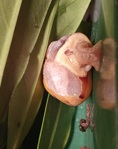 Im Moment hat sie sich so ganz ins Häuschen zurückgezogen, dass sie nur noch an feinen klebrigen Fäden am Deckel hängt und gar nicht mehr mit dem Saugfuß ... ist das ein gutes oder schlechtes Zeichen?