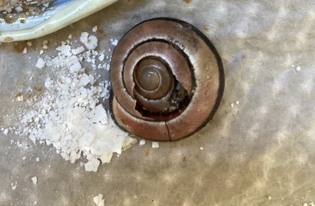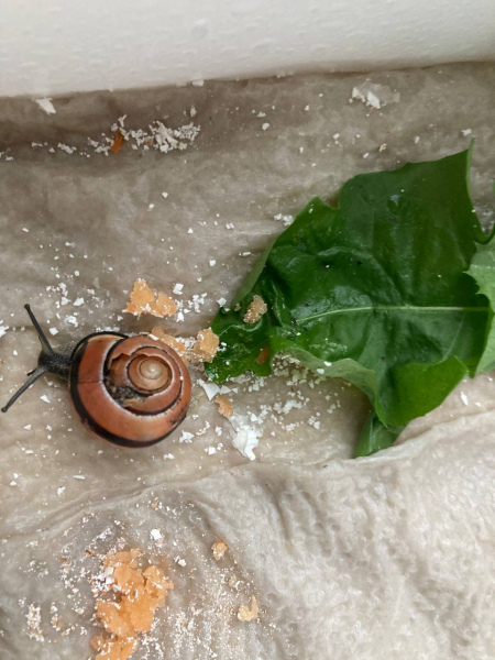 ich habe gerade im Bus(!) zufällig eine Hain-Bänderschnecke (davon gehe ich jedenfalls aus) mit kaputtem Gehäuse gefunden. Die arme lag auf dem Absatz neben meinem Sitz und ich habe sie zum Glück gesehen, als ich mich gesetzt habe. Zunächst dachte ich, es sei ein leeres Schneckenhaus, bei näherem Hinsehen habe ich aber den Körper tief zurückgezogen erkennen können. Gerochen habe ich nichts, daher gehe ich erstmal davon aus, dass sie noch lebt. Ich habe die Schnecke in ein Taschentuch gepackt und mitgenommen und nun sitzt sie auf feuchtem Zewa in einer Box (abgedeckt mit Fliegengitter). Sie hat Eierschalenpulver vor der Nase und ein Schälchen mit Heilerde-Schlamm. Bewegt hat sie sich in den letzten zwei Stunden nicht.