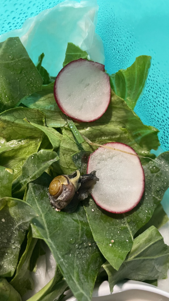 ich ärgere mich so über mich selbst. Normalerweise rette ich jede Schnecke die ich sehe und setzte sie zur Seite, damit sie nicht zertreten wird. Nun ist mir gestern Abend genau das passiert, ich bin drauf getreten. Ich habe nun etwas hier im Forum gelesen und habe ihr nun eine Rettungsstation gebaut. Ich habe feuchtes Zewa drunter und dann Eisbergsalat, Kohlrabiblätter und etwas Radieschen reingelegt. Zusätzlich habe ich eben Eierschale so fein wie möglich zermahlen mit etwas Wasser vermischt. Sie ist da ordentlich zugange. Was meint ihr? Kann ich noch was besser machen? Ich hoffe so sehr, dass sie es schafft!