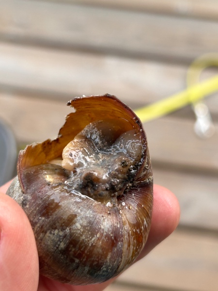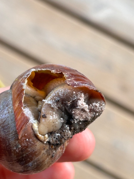 Gestern Mittag habe ich diese verletzte Weinbergschnecke am Wegrand gefunden. Ich vermute mal, dass da ein Vogel ran wollte…?! die zweite war leider schon tot, es kam schon braune Flüssigkeit raus diese hatte nahezu die gleiche Beschädigung.