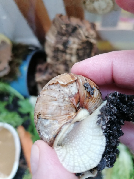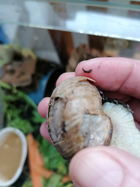 Ich hab ihn zu meinen Pomatia ins große Terra gesetzt und ich bin hellauf begeistert, das Haus ist schon fast fest ! Gestern noch wie Pergament heute noch fester...Und kaum genesen....paart er sich seit heut früh...