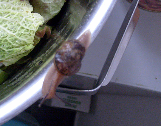 die ersten 2 Bilder sind von ihr ohne Haus. Leider ist sie nur so klein drauf, weil ich noch nicht wusste wie man Nahaufnahmen mit der Digitalkamera macht, da ich sie erst seit kurzem benutze. Die letzten 2 sind von gestern. Das Häuschen ist jetzt komplett fest und, wie ich heute gesehen habe, kann sie jetzt fast ganz drinnen schlafen. Das Häuschen wirkt jetzt auch grösser, wie wenn sie es von innen weitet. Echt spannend. Und fressen tut sie immer nur das alte Blumenkohlblatt und die Heilerde.