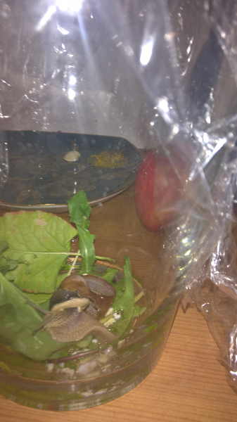 die Schnecke hat relativ gute Chancen. Sie wird auch merken, dass das Loch der falsche Ausgang ist. Eine weitere Idee wäre es, das Loch mit Eierschale abzukleben. Das ist wichtig, damit die Schnecke nicht zu viel Feuchtigkeit verliert.