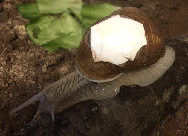 das ist meine erste Weinbergschnecke, die mit Verletzung in die kritische Jahreszeit kommt. Sie hat übrigens ein weißes Häuschen, was auf Leben in saurem Boden schließen lässt oder auf ein hohes Alter. Ich denke, sie ist ausgewachsen und sehr alt. Nur stabile und "gesunde" Schnecken sollten überwintern . Draußen müsste sie notgedrungen überwintern/winterruhen, und das könnte diese Verletzte, die ich habe, das Leben kosten.