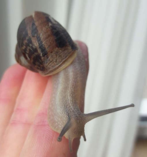 An Tag 1 hat das Gehäuse schlimmer ausgesehen mit mehreren losen Teilen, die ich nur versucht habe wieder an den richtigen Ort zu schieben, ohne was darunter zu beschädigen, hat meiner Meinung nach gut funktioniert. Sie wurde in einer großen Tupperbox untergebracht, 1 bis 2 mal täglich mit Leitungswasser besprüht, abgedeckt mit einer Plastikfolie mit Luftlöchern darin, unter Zimmertemperatur untergebracht. Unten feuchte Erde, darüber eine Mischung asu Gras, Wiesenkräutern, Laub, und Futter, das ich verteilt habe (geraspelte Karotte, extrem schmal geschnittener Apfel, Birne, Tomate, dann Brokkoliblätter, Karottengrün, Fenchelgrün). Davon hat sie eigentlich nur Karotte, ein bisschen Apfel gegessen. Schön geformten Kot jeden Tag abgesetzt. Habt ihr noch Futtertipps?