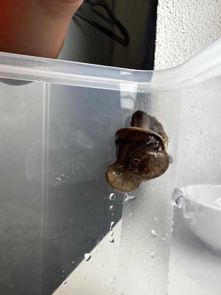 vor etwa 3 Wochen habe ich in meinem Technikraum eine Schnecke gefunden. Ich komme aus Unterfranken. Was genau das für eine ist, weiß ich nicht. Halt eine Schnecke, wie man sie hier überall findet :D ich wollte sie mit meiner Tochter zusammen frei lassen, aber habe es dann irgendwie vergessen. Und dann war sie verschollen.