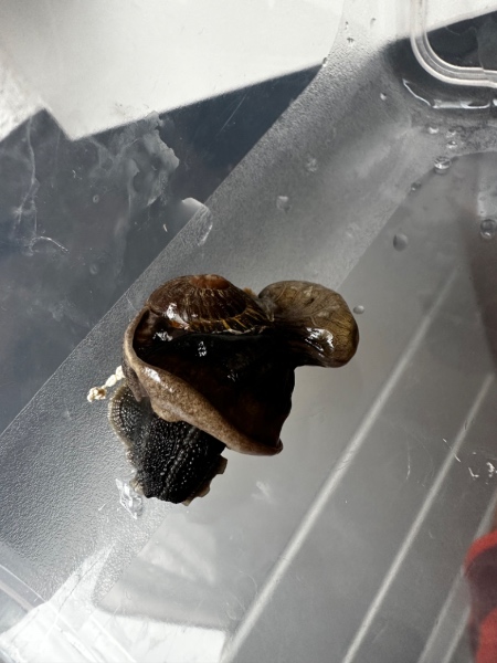 Ich bilde mir ein, dass es jetzt einen hauchdünnen Film schon gibt. Die Bedingungen für sie haben sich aber aktuell noch nicht gebessert, weil zuhause mit Kindergeburtstag nicht viel Zeit war. Heute geh ich zu meiner Mutter und besorgen Sepiaschale und ein Terrarium. Sie hatte jahrelang eine Schildkrötenauffangstation und ist eig perfekt ausgerüstet für so eine Aktion.
