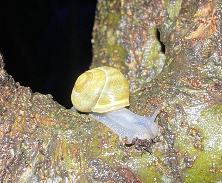 So ein Ästchen mit dünnem, grünem Belag und/oder Flechten (am liebsten die gelbgrünen) wäre für die Schnecke sicher ein passender Proviant.