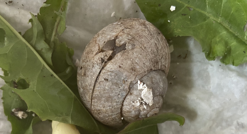Sie hat unten am Haus ein ca 1,5 cm großes Loch, da schaut auch ihr Körper etwas raus. Ich habe sie auf ein feuchtes Küchentuch gesetzt und Eierschalen ausgestreut, aber sie frisst wie gesagt überhaupt nicht. Hat sie noch eine Chance? Benötigt sie vllt Kraft und Ruhe,um ihr Haus zu reparieren?
