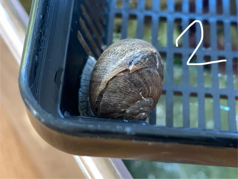 Die größere Schnecke scheint schon dabei zu sein ihr Gehäuse langsam zu reparieren (Fotos Schnecke 1). Die kleine Schnecke hat aber Risse im ganzen Gehäuse und ich weiß nicht ob sie es selbst reparieren kann? (Fotos Schnecke 2). Sie scheint munter.