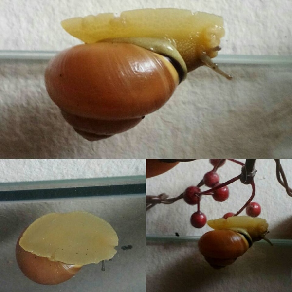 Die gesunde, rosane Schnecke war schon vorher recht groß, sehr agil, das Häuschen ganz schön gewachsen, hatte einen ähnlichen Schlaf Wach Rhythmus wie Bolt, eben überwiegend Nachts aktiv.