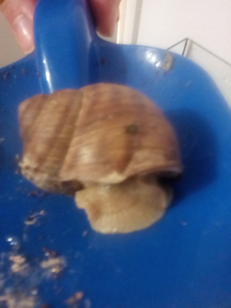 Leider bekomme ich kein Foto hin, dass einigermaßen gut erkennen lässt was ich meine. Sie hat halt so ein etwas härteres Zeug am unteren Häuschenrand , zudem sieht es so aus, als ob die obere Häuschenschicht stellenweise abblättert.Ich füge rotzdem mal ein Foto an. Die Schnecke ist weiterhin zurückgezogen und was das Thema Kot einschicken schwierig macht, ist , dass sie nichts mehr frisst. Ich habe bereits versucht sie zu füttern, aber sie flüchtet regelrecht vor dem Futter. Dementsprechend gibt es momentan keinen Kot zum Einsammeln.