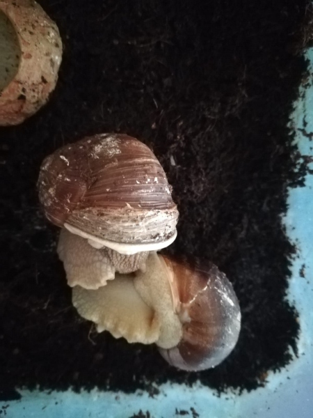 Etwa vor 24 h war noch alles gut, meine beiden Schnecken saßen auffällig oft aufeinander und die nicht betroffene Schnecke hatte einen massiven Hauswachstum (1 cm innerhalb von wenigen Sekunden rausgeschoben o.O) und die jetzt kranke Schnecke hat fröhliche zugeschaut bzw. das neue Stück "betastet".