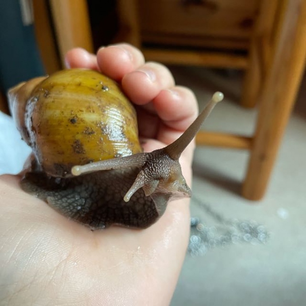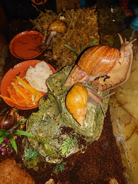 Da unser alter Schneckrich (7 Jahre alt) seit ein paar Tagen der letzte von ursprünglich vier Geschwistern ist, haben wir uns nach Achatina-fulica-Kolleg*innen umgesehen. Mir wurden privat vier junge Fulicas angeboten, allesamt im Frühjahr 2021 geboren und mittlerweile geschlechtsreif. Das ist wohl auch der Grund, warum die Vorbesitzerin sie abgeben wollte. Soweit alles gut. Aber diese vier Neuzugänge sind Zwerge, verglichen zu unserem Opi im Terrarium. Sein Häuschen ist locker 13 cm lang und die Häuschen der jungen sind 7, maximal 8 cm groß. Wie kann das sein? Gibt es überhaupt so kleine Fulicas? Oder ist es doch eine andere Art?