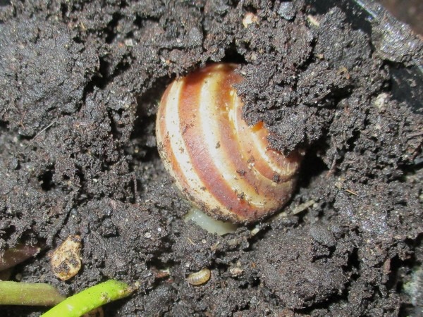 Als zwei Tage später der Topf "schneckenfrei" war, habe ich aus ihm die Pflanzen rausgeholt und wie erwartet mehrere Gelege gefunden.