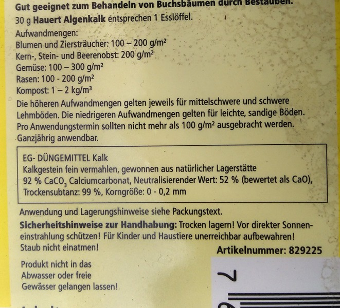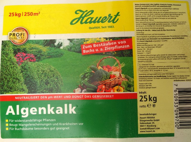 Genauer, den richtigen Kalk zum Boden Aufkalken.