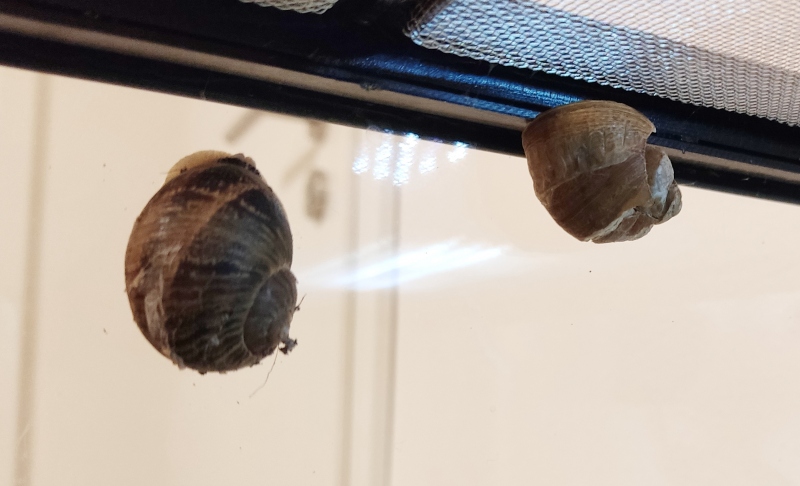 Sehr zu meiner Freude treibt der Regen draußen meine Schnecken abends früher aus dem Bett und auch morgens sind sie länger aktiv. So sind gestern ein paar schöne Fotos entstanden.