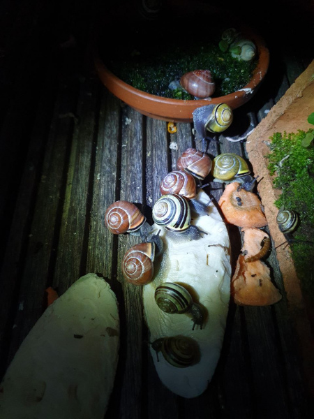 Etwa 100 Schnecken leben hier oben :c), wieviele es unter den Holzdielen sind, weiß ich nicht.