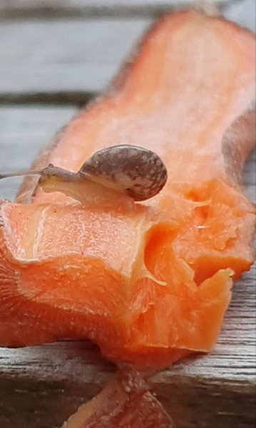Und dann hatte ich noch ein Mini-Schnecki von einem ungünstigen Standort in die vordere Kolonie überführt, sie war sehr hungrig: