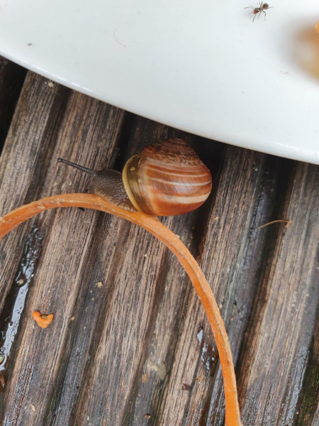 Und dann hatte ich noch ein Mini-Schnecki von einem ungünstigen Standort in die vordere Kolonie überführt, sie war sehr hungrig: